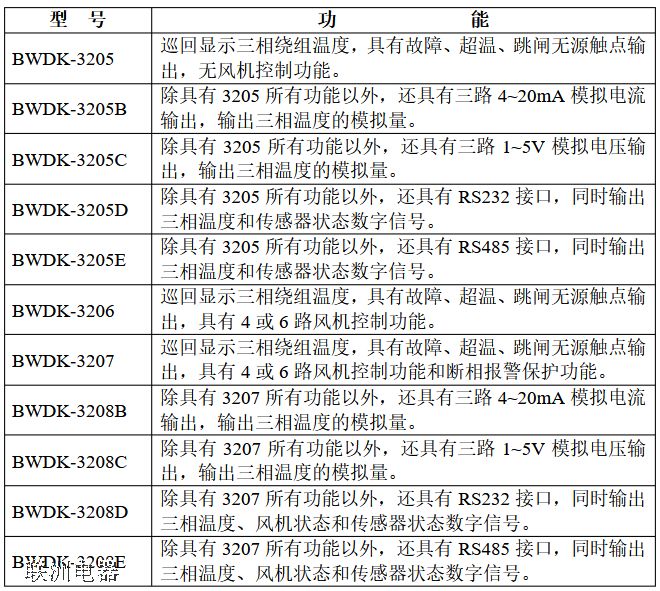 BWDK干式變壓器溫度控制器各型號(hào)說明