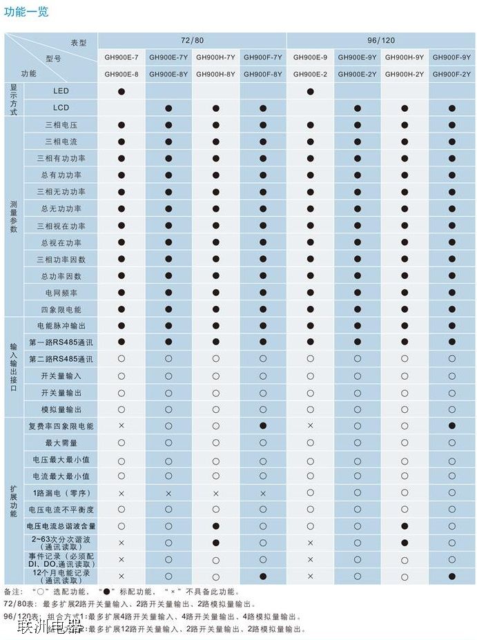 GH900E系列多功能儀表采用現(xiàn)代數(shù)字信號處理芯片和高精度的電能計量芯片、能夠精確穩(wěn)定地測量三相電網(wǎng)中的所有常用電力參數(shù):三相電壓、三相電流、有功功率、無功功率、視在功率、電網(wǎng)頻率、功率因數(shù)、電能、電壓不平衡度、電流不平衡度、平均電壓、相間電壓夾角、電壓總諧波,電壓2~63次分次諧波,電流總諾波、電流2-63次分次諧波,電壓Z大值Z小值,電流Z大值Z小值,兩個時區(qū)4種費率8個時段。有功無功Z大需量,通過外部漏電(或零序電流互感器實現(xiàn)漏電(或零序)電流的測量、Z多32條開關(guān)變位SOE事件記,輸入輸出接口Z多可配備:兩路電能膚沖輸出、兩路數(shù)字通迅接口、四路開關(guān)量輸入。四路開關(guān)量輸出、四路模擬量輸出。