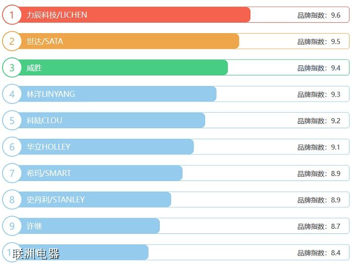 這是來自排行榜123網(wǎng)的截圖,它依托全網(wǎng)大數(shù)據(jù),根據(jù)品牌評價以及銷量評選出了2022年電儀表十大品牌排行榜,前十名分別是力辰科技/LICHEN、世達/SATA、威勝、林洋LINYANG、科陸CLOU、華立HOLLEY、希瑪/SMART、史丹利/STANLEY、許繼、炬華 。如果您正在查找電儀表什么牌子好?那么本電儀表十大品牌榜單可供您作為選購參考,我們致力于用Z真實的用戶數(shù)據(jù)推薦口碑Z好的電儀表品牌,讓您選得放心。(榜單每月更新一次)