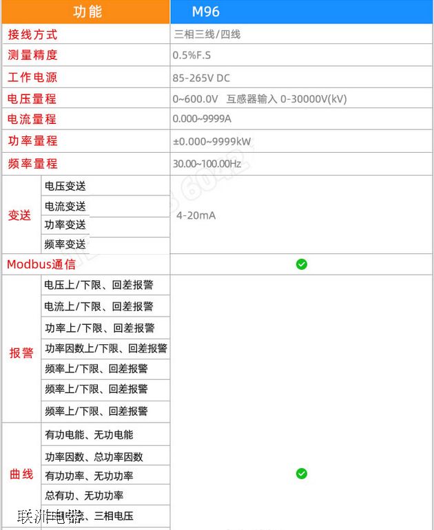 M96三相多功能電力儀表,采用7寸彩色觸控屏+按鍵操作,可三相三線/四線切換了,具備電流、電壓、頻率、功率、四象限電能、有功功率、無(wú)功功率、功率因數(shù)、采樣波形、諧波分析等多種電能值測(cè)量和統(tǒng)計(jì)。具備1-3報(bào)警輸出或mA電流變送輸出,支持modbus通信協(xié)議。
