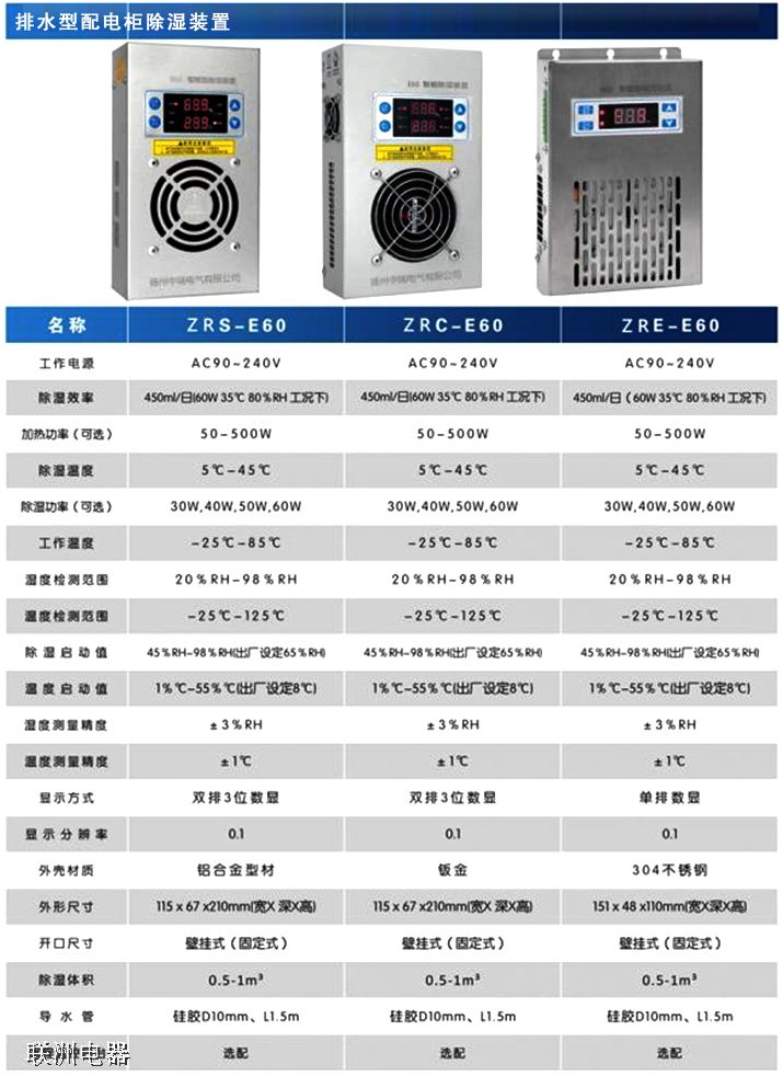 ZRS-E60、ZRC-E60、ZRE-E60電箱排水除濕機用于配電箱中解決高濕度空氣問題,采用新型排水除濕技術(shù),相比傳統(tǒng)方法要高效得多。