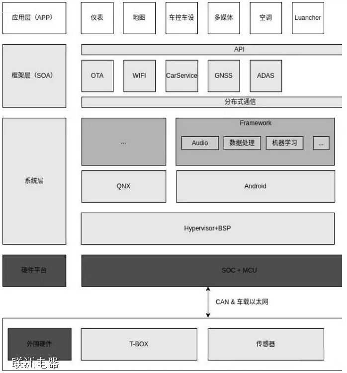 上面就是目前主流汽車座艙采用技術(shù)架構(gòu),我們從上到下依次介紹: