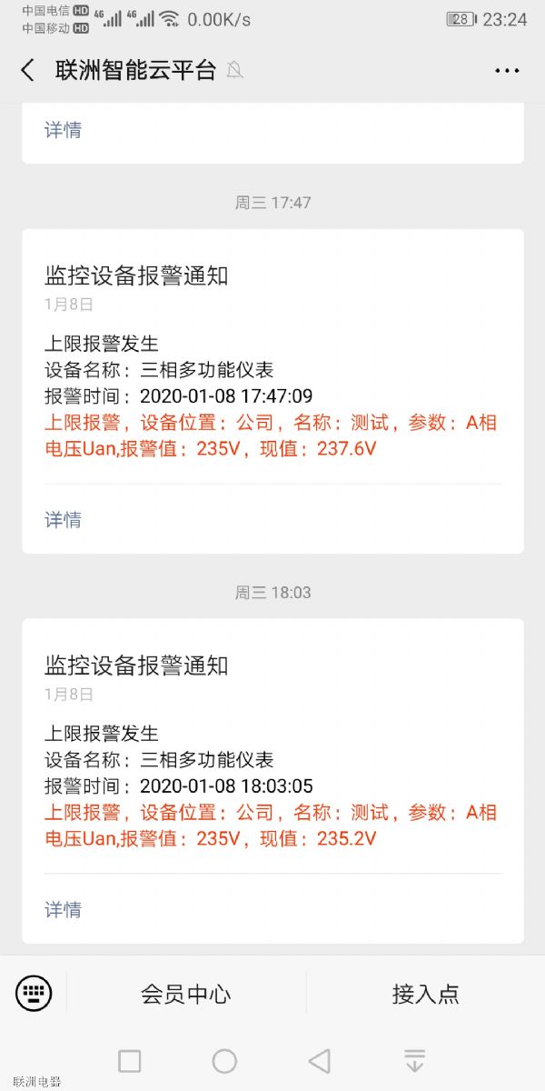 除了電腦上,手機(jī)上也可以看到,還支持微信報(bào)警,比如電流高了就發(fā)微信告訴你。