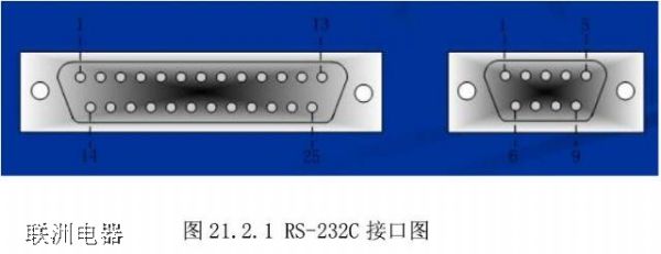 RS-232C定義了數(shù)據(jù)終端設(shè)備(DTE)與數(shù)據(jù)通信設(shè)備(DCE)之間的物理接口標準。RS-232C 接口規(guī)定使用 25 針連接器,簡稱 DB25,連接器的尺寸及每個插針的排列位置都有明確的定義,如圖 21.2.1 所示: