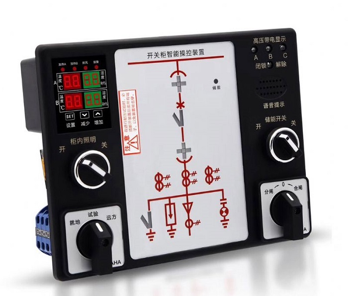 開(kāi)關(guān)柜操控顯示裝置,分為A/B/C/D四個(gè)型號(hào),A型為基本型號(hào),具備回路模擬指示、帶電指示及閉鎖功能、溫濕度數(shù)字實(shí)時(shí)顯示、自動(dòng)加熱除濕控制、自動(dòng)排風(fēng)降溫控制、斷路器分合閘狀態(tài)指示、儲(chǔ)能、接地開(kāi)關(guān)指示、手車位置指示、人體感應(yīng)語(yǔ)音提示,防誤語(yǔ)音提示以及RS-485通訊接口等功能于一體。B/C/D三個(gè)型號(hào)是在基本型的基礎(chǔ)上,擴(kuò)展了開(kāi)關(guān)柜無(wú)線測(cè)溫、多功能表測(cè)量等功能。
