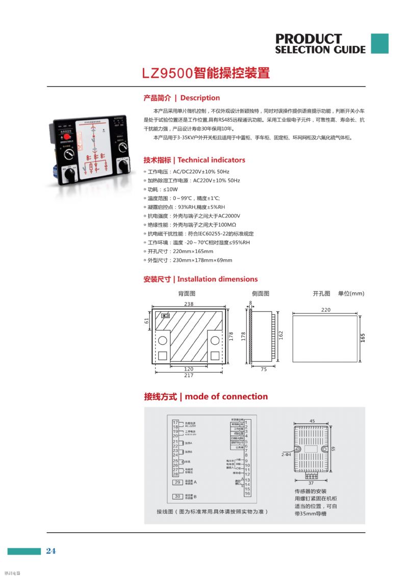 BH9500開(kāi)關(guān)柜智能操控裝置智能化采用32位微處理器控制,與常規(guī)的開(kāi)關(guān)柜狀態(tài)顯示儀相比,具有高速運(yùn)算、高速采樣、快速響應(yīng)、更加實(shí)時(shí)。設(shè)備可顯示開(kāi)關(guān)分合狀態(tài),還可判斷開(kāi)關(guān)小車(chē)是否處于試驗(yàn)位置與工作位置之間;此外設(shè)備具有溫濕度傳感器過(guò)壓過(guò)流保護(hù),對(duì)于工業(yè)場(chǎng)合應(yīng)用,更加可靠穩(wěn)定?煽啃约翱垢蓴_采用工業(yè)級(jí)電子元件,具有可靠性高、壽命長(zhǎng)、抗干擾能力強(qiáng)等特點(diǎn)。發(fā)光模塊采用進(jìn)口發(fā)光芯片,戶(hù)外高亮級(jí),壽命 170000小時(shí);采用獨(dú)特的抗干擾技術(shù),保證設(shè)備可靠運(yùn)行。二技術(shù)指標(biāo)環(huán)境溫度: -40℃~80℃ (±0.5℃)相對(duì)濕度: 0~99%RH (±3%RH)介質(zhì)強(qiáng)度: ≥AC2000V絕緣性能: ≥100MΩ抗電磁干擾功能: 符合IE C255-22的標(biāo)準(zhǔn)規(guī)定工作電源:DC110V, DC220V, AC220V (三種可選)通訊方式:RS485(選配)功耗:≤10W開(kāi)孔尺寸:120(長(zhǎng)) X 180(寬) X 50(深)mm 主要功能說(shuō)明 動(dòng)態(tài)顯示 斷路器狀態(tài)顯示斷路器合閘并且分閘回路完好時(shí),紅色01模擬條發(fā)光。斷路器分閘并且合閘回路完好時(shí),綠色02模擬條發(fā)光