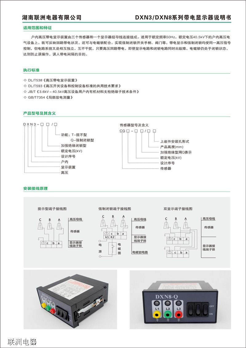 2、顯示器是以發(fā)光二極管顯示高壓帶電狀況,電容型傳感器輸出信號強,可以直接實現(xiàn)帶電長亮指示,電子型信號比較弱,只能采用放大電流,實現(xiàn)閃爍型間歇指示。閉鎖型顯示器可配用電磁鎖實現(xiàn)控制閉鎖功能,閉鎖型顯示器可以根據(jù)客戶需求生產(chǎn)雙電源型和單電源型兩種形式,雙電源閉鎖型帶電顯示器需要另加一個工作電源,其工作范圍是AC/DC220V或AC/DC110v,而單電源閉鎖型帶電顯示器只是利用電磁鎖電源直接實現(xiàn)閉鎖功能。具體見顯示裝置接線圖(1)