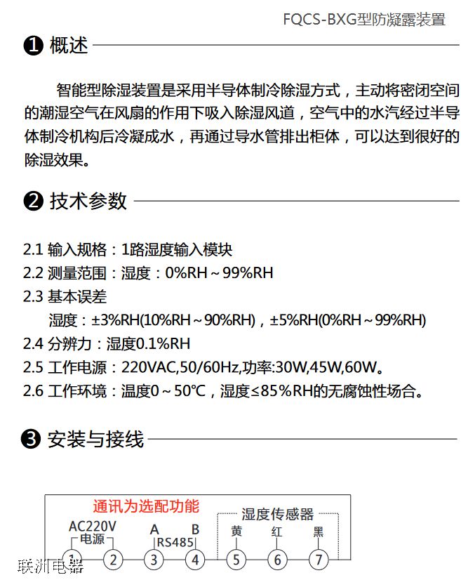 3、連接好產(chǎn)品的傳感器和AC220V的工作電源,這樣FQCS-BXG型防凝露裝置就可以開始自動工作了;