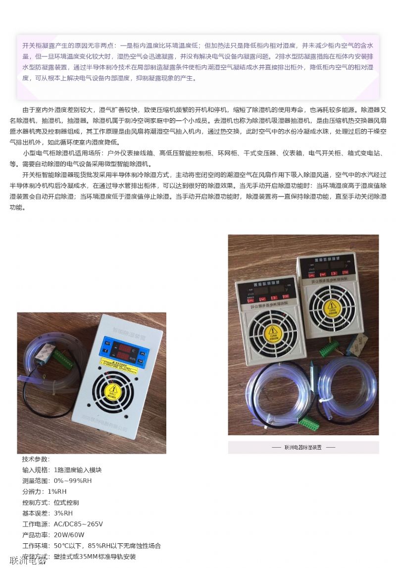 當(dāng)潮濕空氣經(jīng)風(fēng)扇吸入后,通過特殊設(shè)計的風(fēng)道流動,先經(jīng)半導(dǎo)體制冷器降溫結(jié)露,制冷器的結(jié)露在重力作用下滴入引水槽,再由導(dǎo)水管流出柜外。在設(shè)定啟動值內(nèi)經(jīng)過充分循環(huán)除濕,使柜內(nèi)空氣濕度降至結(jié)露點以下,完成整個防潮引凝加熱過程。同時,智能型除濕裝置信號采集傳感器外置,能實時準(zhǔn)確的采集到柜內(nèi)的真實濕度,保證智能型除濕裝置在柜內(nèi)將要達(dá)到凝露條件時提前啟動除濕。