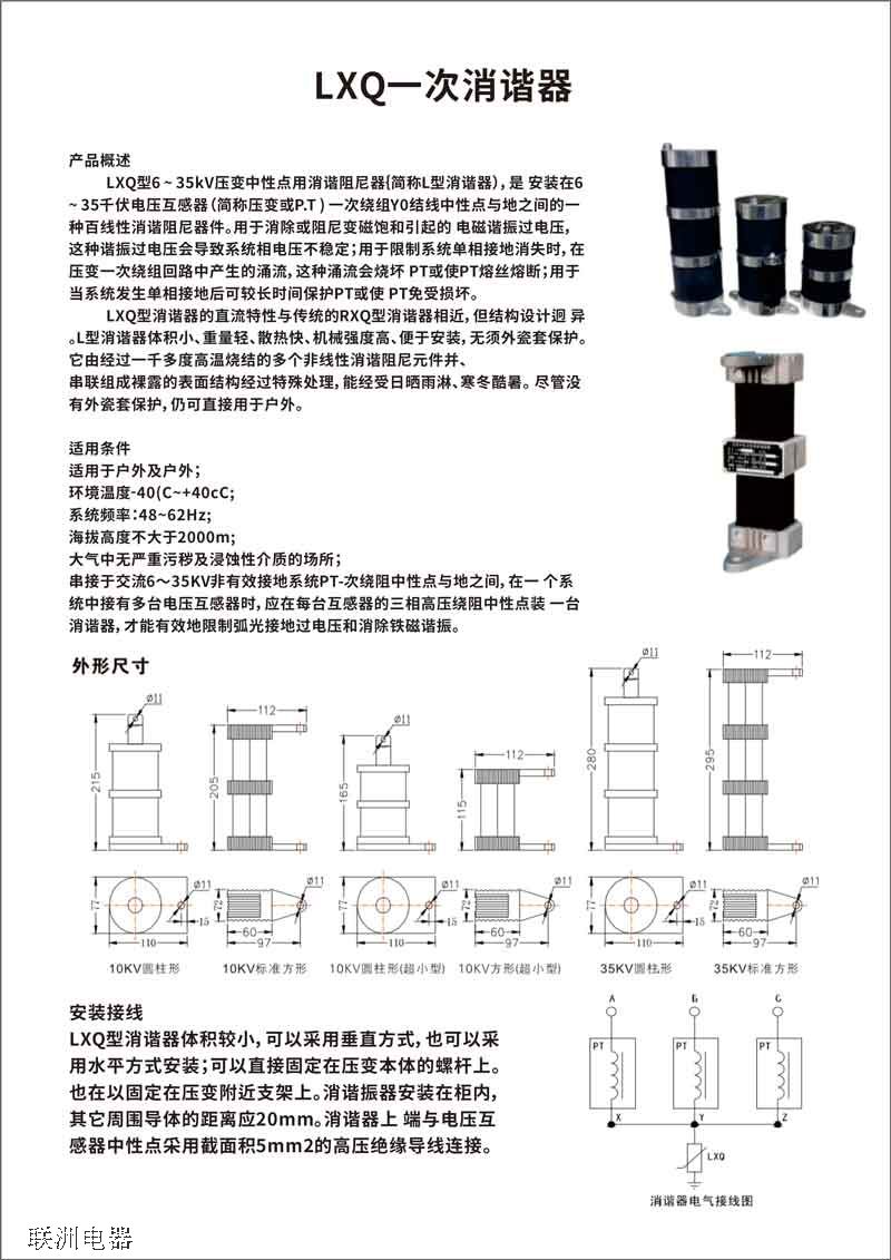 一次消諧裝置體積小、重量輕、散熱快、強(qiáng)度高、便于安裝等特點(diǎn),適用于各種電壓互感器。