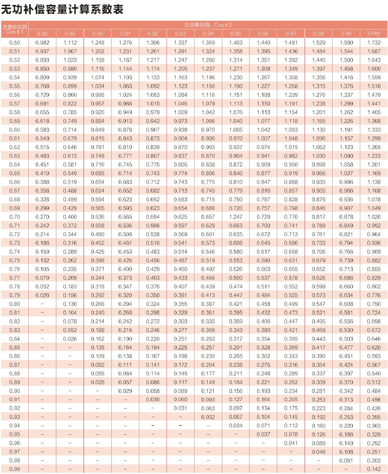 無功補償裝置的補償容量是如何計算?無功補償容量計算系數(shù)表