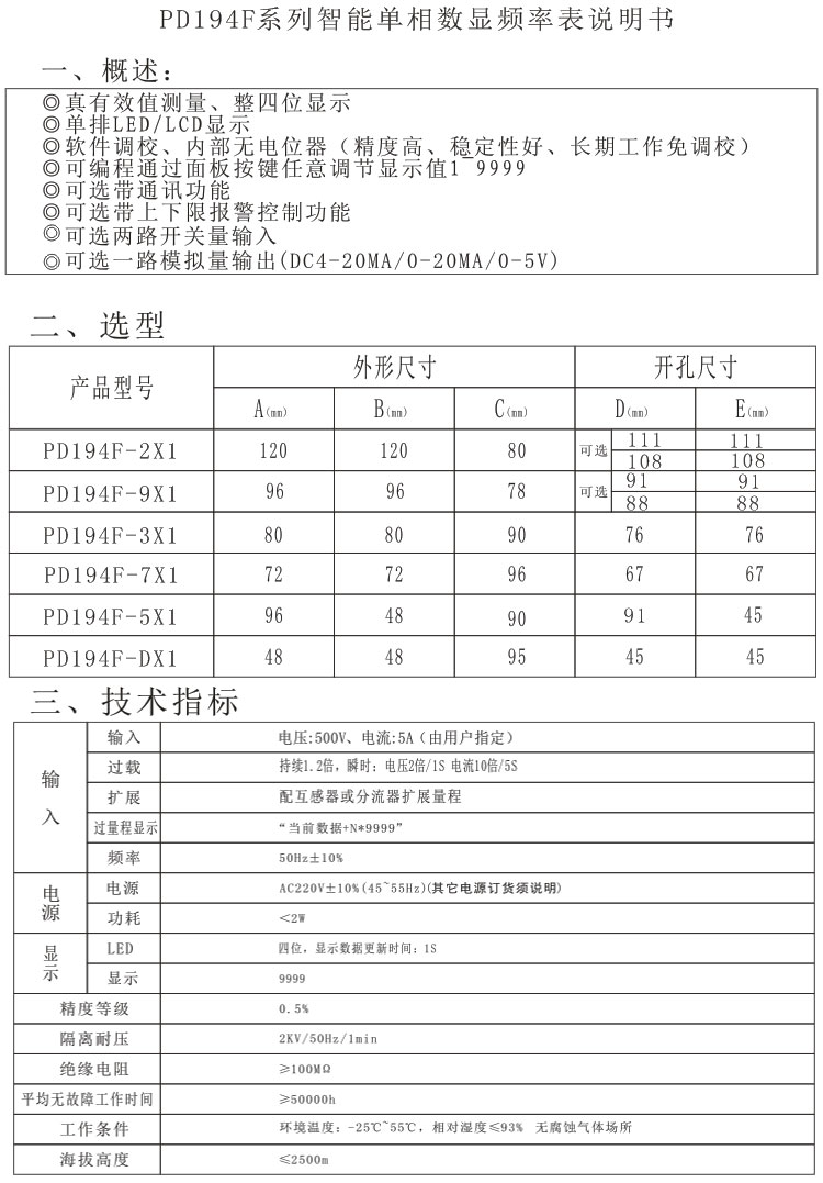 PD194F系列單相交流頻率表數(shù)顯頻率表采用真有效值測量技術(shù),大尺寸整4位LED數(shù)碼管顯示,是我公司出貨量比較多的一款頻率測量儀表。