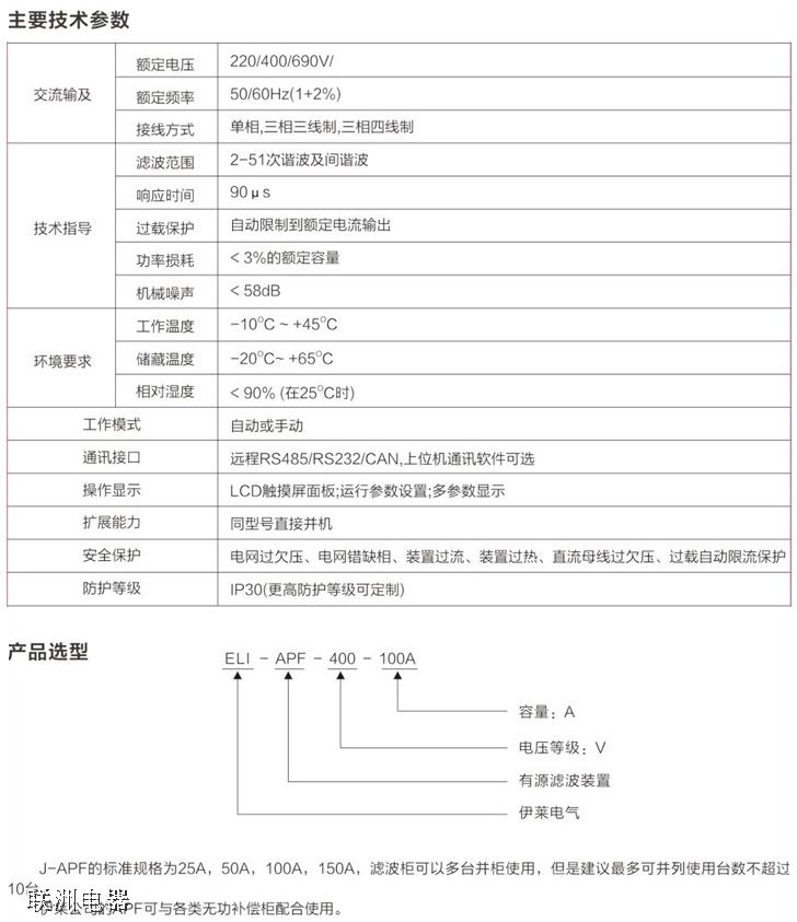 ELI-APF系列有源濾波器 諧波濾除率高響應速度快